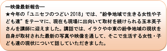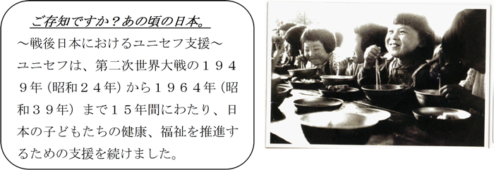 日 時 : 5月6日(日) 13::00~15:00 『募金活動』及び「ようこそ『チームユニセフ』へ」の展示 |